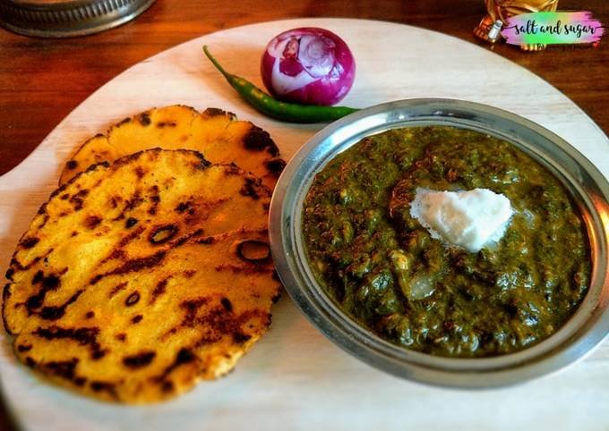 Saag with Makki Ki Roti is a traditional Punjabi dish made of mustard greens and maize flour flatbread.